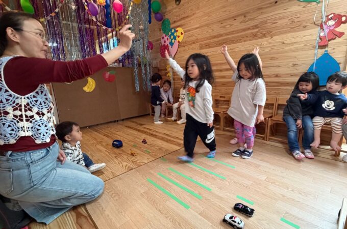 今週は、今月のテーマの一つ『スクールのお約束』について学習しました。お兄ちゃん、お姉ちゃんになったお友だちが、優しく新入園児に教え...